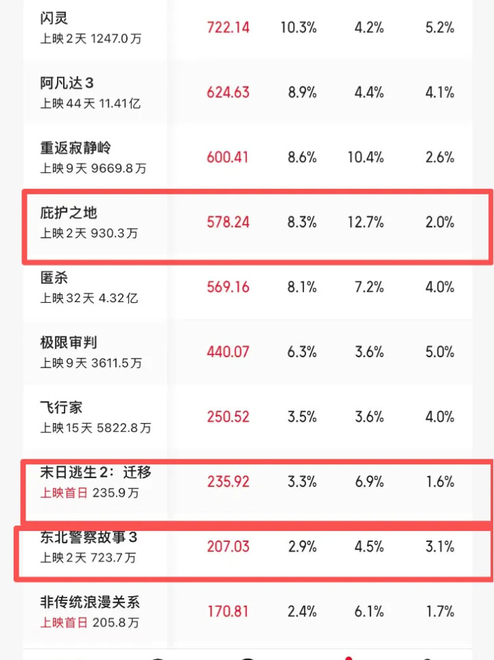 《末日逃生》压根就没有排片,上映首日就扑街;